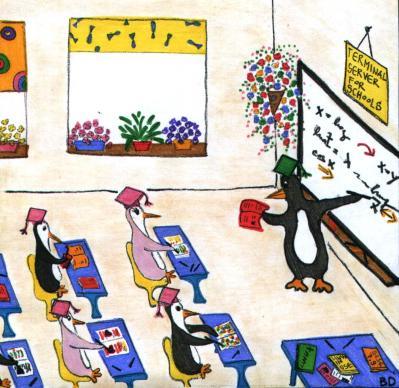 "Für den Einsatz von Server/Thin Client Systemen kann ebenfalls von einer Reduzierung der Wartungs und Supportkosten ausgegangen werden." "Die Reduzierung des Wartungsaufwands kann als systeminherent angesehen werden. Die Computerarbeitsplätze haben keine Festplatte, bewegliche Teile o.ä., die gewartet oder aufgerüstet werden müssen. Sie verfügen auch nicht über lokale Daten oder Programme, die administriert werden müssen. Die zentrale Fernwartung und Softwareverwaltung kann alleine über die Server realisiert werden. Ein Leistungszuwachs geschieht somit ausschlielich über den Server, während die Arbeitsplätze längere Standzeiten haben können." "Auch die Erweiterung der Anzahl der Arbeitsplätze ist, soweit sie im Rahmen der Serverleistung erfolgt, im Verhältnis zu PC Lösungen als kostengünstig zu bezeichnen." "Die Administration der gesamten Software wird an den Servern durchgeführt, der Weg zu den einzelnen Arbeitsplätzen bleibt erspart. Neue Anwendersoftware wird einmal am zentralen Server installiert und steht allen angeschlossenen Arbeitsplätzen gleichermaßen zur Verfügung." "...wobei zu erwähnen ist, dass StarOffice ein